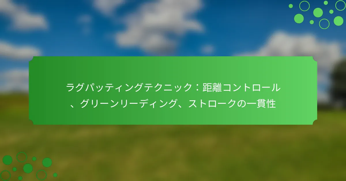 ラグパッティングにおける効果的な距離コントロールは、さまざまな要因がボールの速度と方向にどのように影響するかを理解することを含みます。主要なテクニックには、ストロークの長さを調整すること、グリーンを正確に読み取ること、そして判断力を向上させるために定期的に練習することが含まれます。