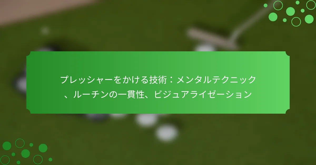 プレッシャーの中でのパッティングに効果的なメンタルテクニックは、ゴルファーが不安を管理し、自信を高め、重要な瞬間に集中力を維持するのに役立つ戦略を含みます。これらのテクニックには、不安の管理、ポジティブな自己対話の活用、マインドフルネスの実践、呼吸法の利用、パフォーマンスを向上させるためのメンタルリハーサルの実施が含まれます。
