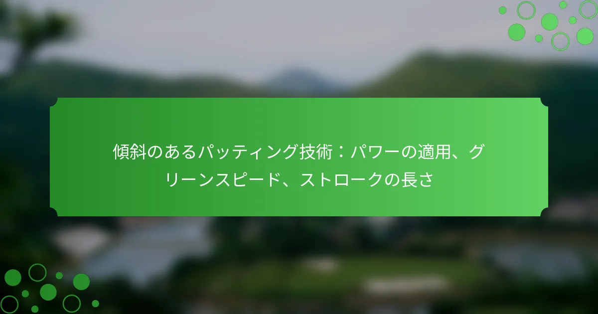 上りのパットには、パワー、ストロークの長さ、グリーンスピードを効果的に管理するための特定のテクニックが必要です。これらの要素をマスターすることで、グリーンでの精度と一貫性を大幅に向上させることができます。適切なパワーを適用し、グリーンスピードに応じて調整する方法を理解することは、上りのパットの課題を成功裏に乗り越えるために不可欠です。
